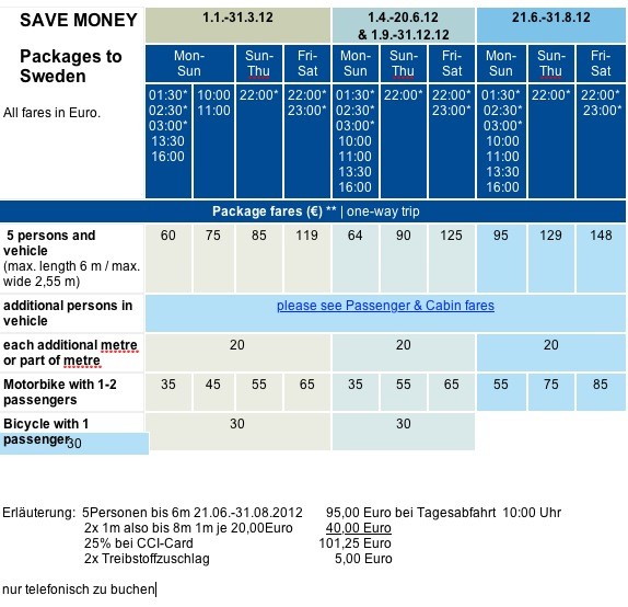 danke für die Info mit TT-Line, aber mit denen sind wir früher immer zufrieden gewesen, aber seit 4 Jahren wollen wir nicht mehr mit TT-Line fahren. Immer übervoll, absolut keine Ruhe und bedeutend zu teuer. Wir werden dann also unsere Passage bei Finnlines nutzen. Und in 25 Tagen kann man sehr viel sehen, wir sind vor vielen Jahren mit einem T3-Womo in 19 Tagen schlappe 9700km gefahren. Das ging auch..... muss aber heute nicht mehr sein :D Warum ihr allerdings nicht mit der Finnlines fahrt kann ich nicht verstehen, es sind gerade mal 120km von Rostock bis an den Skandinavienkai in Travemünde. Ihr würdet bei Tagesabfahrt mit eurem Fzg, und CCI-Rabatt keine 107,00 Euro zahlen. --> Link Nur mal so als Denkanstoß.... Tommi Hallo Tommi
