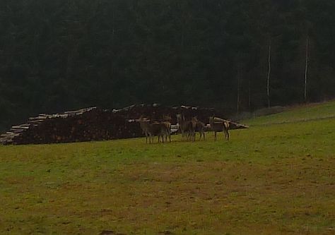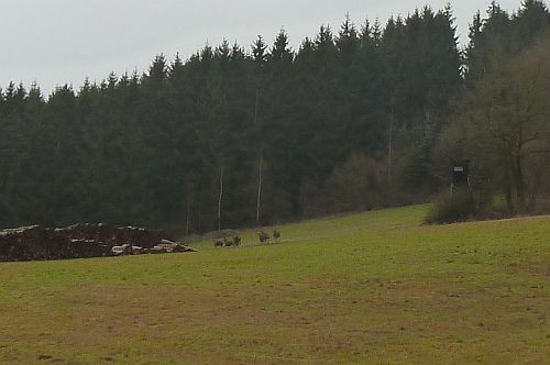 Unterwegs begegnete uns ein Rudel richtig großer Hirsche, die sogar stehen blieben, aber leider nicht warteten, bis ich aus dem Auto draußen war und die Kamera einsatzbereit hatte. Ich wusste ja, dass die Tiere riesige Sprünge machen können, aber aus dem Stand heraus hüpften die nacheinander fast senkrecht gute 2 Meter hoch, bevor sie abdüsten.