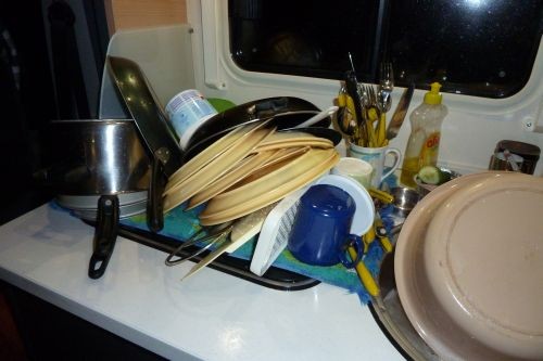 Hab erst mal gespült, damit wenigstens kein dreckiges Geschirr durch die Gegend fliegt.