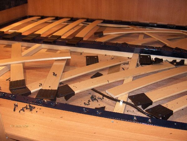 Ich möchte im Laika X695 baujahr 2008 das alkhoven bett von den ziemlich unsinnigen lattenrosten befreien.