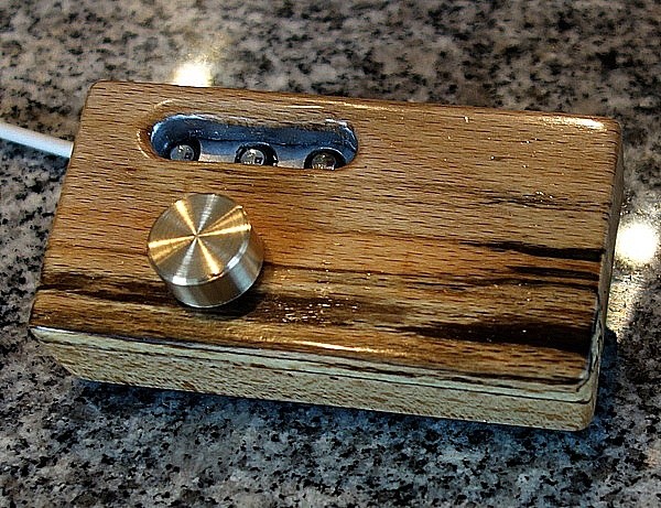 Das ganze in ein Stück Buchenbrennholz - aus dem Stück heraus gefräst, geschliffen, lackiert.