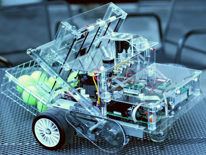 Hier mal etwas komplexeres: Im Rahmen einer Studienarbeit eines Studenten in meiner Firma habe ich diesen Roboter gebaut.