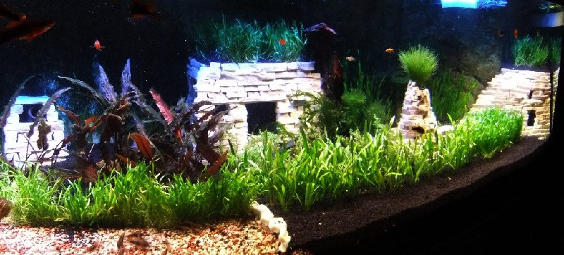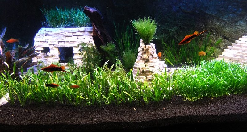 Ihr sehr zwar ein paar einfache Schwertträger auf den Bildern, aber diese dienen der Fütterung. Schwertträger gebären jede Woche rund 50-100 Nachfolger. Diese dienen als Lebendfutter für die "komplizierten" Fische.