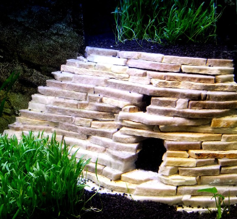 Das Becken ist eine Einzelanfertigung eines Aquarienbauers nach meinen Wünschen. Besonders schwer war es eine 250cm lange gewölbte Scheibe zu erhalten.