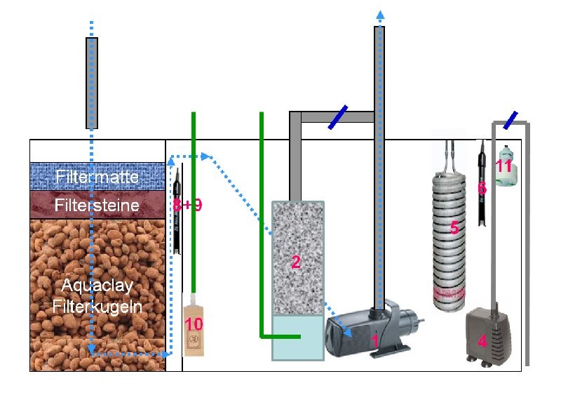 5) Der automatische Wasserwechsel: Darauf bin ich stolz, denn den habe ich selbst gebaut. Im Prinzip funktioniert er wie folgt: