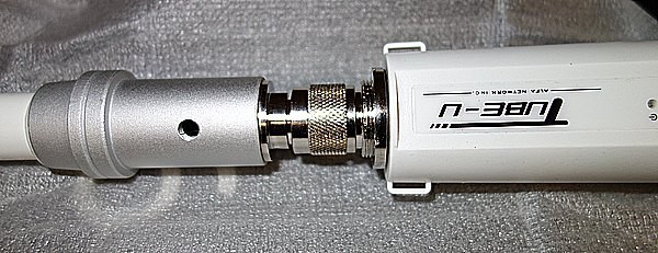 Nun sind der USB-Receiver und die Antenne zwei völlig unterschiedliche Teile unterschiedlicher Hersteller. Aber bei der Antenne war noch ein Abdeckrohr mit dabei, falls man diese eigenständig anschließt und über die mitgelieferten Rohrhalter befestigen will: