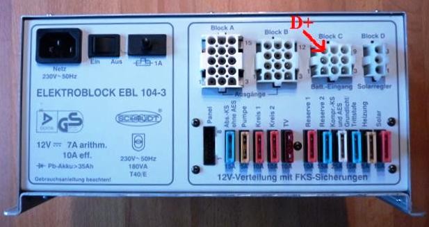 :D :D So, der Aufbauakku wird wieder von der Lichtmaschine geladen. Die Fa. Schaudt hat mir netterweise einen Stromlaufplan zum EBL 104-3 als PDF geschickt. So konnte ich den Fehler, nachdem ich die Sitze ausgebaut hatte, schnell lokalisieren. D+ von der Lichtmaschine kam durch, aber das Trennrelais zog nicht an. Dann habe ich den EBL ausgebaut, geöffnet und erst einmal mit Pressluft den Staub der Jahre herausgepustet. Dann ging es an die Fehlersuche. Als Übeltäter stellte sich ein gebrochener Kabelsteckschuh heraus, der wohl mal Kontakt hatte, sich aber immer mehr löste, so das sich der Kontakt des Relais durch den hohen Strom erhitzte und verzog, und so ein Schalten verhinderte. Zum Glück haben wir Reichelt-Elektronik im Ort, und ich konnte mir da ein neues 70A Relais FRC3A12 für 2,15€ holen. Die 9,5mm großen Kabelsteckschuhe habe ich von einer LKW-Reparaturwerkstatt im Ort für 2€ Kaffeekasse bekommen. Das neue Relais hat eine andere Halterung, deshalb habe ich es mittels einer M5 Schraube und 2 Muttern auf Abstand an der Rückwand des EBL befestigt. Die Kabel sind trotz des Nachsetzens noch lang genug. Dann habe ich alle Steckverbindungen des EBL mit einer Messingbürste gereinigt und die Buchsen mit Kontakt 61 (Schmier-und Korrosionsschutzmittel für elektrische Kontakte) ebenfalls von Reichelt für 5,95€/200ml eingesprüht, und das EBL zusammen- und wieder eingebaut. Und siehe da, nach dem Anlassen des Motors konnte ich 13,9V Ladespannung am Aufbauakku messen.