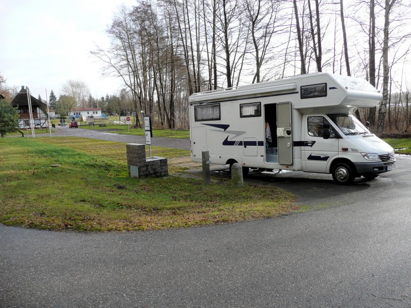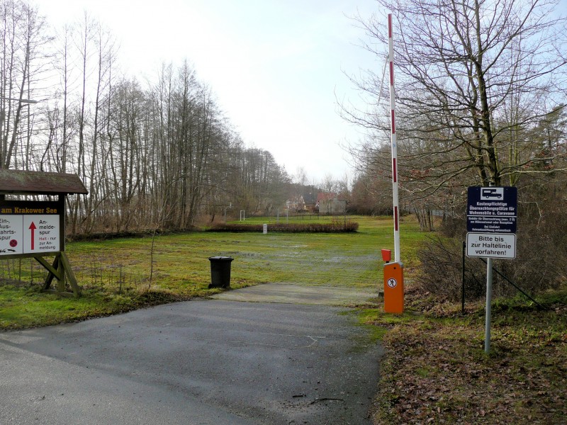 Der Womo-SP des CP Krakow am See, vor der Schranke, abgetrennt vom CP, komplett mit Strom + V&E.