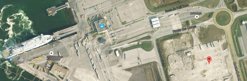 Nein, man kann gut stehen auf dem grossen Parkplatz direkt VOR dem Terminal- stehen. bei 51.0209 / 002.1925 ob der noch grösser P östlich davon, auch zugänglich ist, weiss ich jetzt nicht Aus Preisgründen, habe erst gebucht IM Terminal, an der dortigen Internet-Station ( :!: ) , haben wir eine Nacht-Fähre gewählt. Anstatt um 02 Uhr schickte man uns dann auf die 23 Uhr Fähre, wenn wir wollen. Ich meinte keine Grünfläche, sondern den größeren P direkt vor dem DFDS-Gebäude. Das letzte Mal, dass wir dort übernachtet haben, war letzten Sommer. Die Daten habe ich oben schon einmal genannt: 51.020971, 2.193643 Und hier als Bild: ![]() Das mit dem Eisenbahnsymbol gekennzeichnete Gebäude ist der DFDS-Terminal. Im Terminal gibt es übrigens auch Toiletten und Duschen. Bei frühmorgendlicher Benutzung sind sie auch frisch geputzt ... War ein Fehler von mir, hatte die Koordinaten über Google gesucht, da wurde mir ne Grünfläche angezeigt. Als ich die Koordinaten direkt bei Maps eingegeben hab, wurde mir der Parkplatz angezeigt. Danke für den Tipp. Wie lange kann man denn da morgens stehen? Unsere Fähre geht um 10. Hallo Ole, da kannst Du so lange stehen, bis es Dir nicht mehr gefällt ... aber wirklich schön ist es da nicht. Der Parkplatz gehört zum DFDS-Gelände, ist auch umzäunt. Das heißt aber nichts, da jeder zu jeder beliebigen Zeit rein oder raus kann. Die Zufahrt erfolgt über die Einfahrt zum DFDS-Terminal. Du musst nur, bevor Du Dich in die Schlange für die nächste Fähre einreihst, rechts auf den P abbiegen. Also quasi rechts an diesen 3 "weißen Dächern" vorbei. Im Kreisel kann man wohl nicht rechts abbiegen, so wie`s ausieht. Hey Ole wenn du Glück hast wurde sogar die Dusche gerade gereinigt :-) Gibt es aber nur auf der Männertoilette. Gute Reise womoquest Hallo zusammen, weiß jemand, ob die Aussagen auch heute noch zum Übernachten im Hafen noch gelten? Wenn nicht, gibt es eine Alternative? BTW, wo kann man in Dover geschickt (bei der Rückreise) übernachten? Danke Ralf und Barbara Es gibt einen CP in Dünkirchen. Bernd