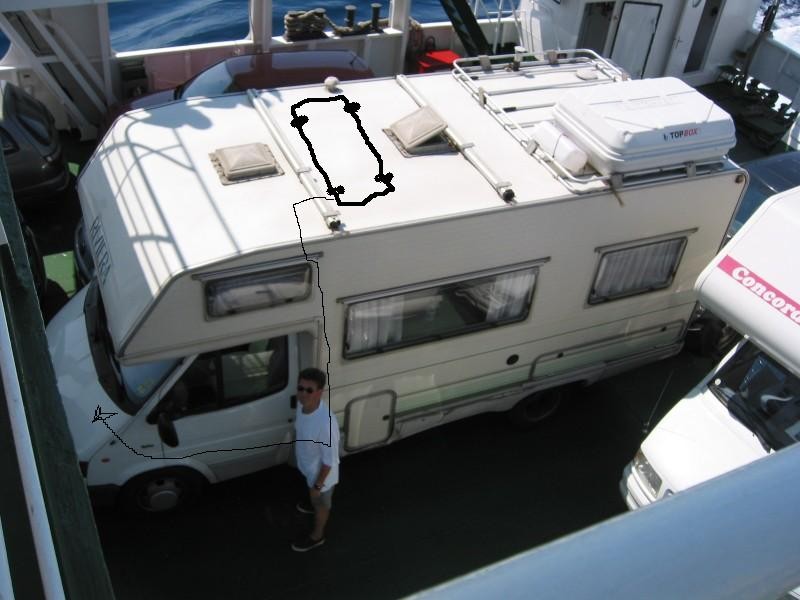 Normalerweise haben wir uns das im Laufe der Jahre so aufgeteilt: mein Mann für alles draußen, ich für alles innen :D . Aber mit dem Solar liebäugel ich die ganze Zeit schon. So, nun aber Frage: unsere Aufbaubatterie sitzt auch vorne im Motorraum (Ford Transit 1996/97). Wie kommt's denn dann noch dahin? Und: Womo steht grad in Werkstatt, weil 2 neue Dachluken fällig sind. Wär es eine Möglichkeit, das Kabel grad in einem mit dadurch zu führen anstatt einen weiteren Durchgang zu schaffen? Hoffnungsvolle von Maggie Dach - wohin Panel? --> ![]() Hallo Hennes