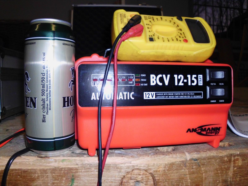 Moin erstmal :) . Ich habe mein Ladegerätchen bekommen. Ich habe mich dabei, um weitere Schwankungen im Hz - Bereich zu vermeiden, an die hier gehaltenen Ratschläge der Fachforis gehalten. Deren Tipps wurden ergänzt durch die Fa. Ansmann, die mir schriftlich bestätigte, dass es klappen muss! Das Ladegerät leistet 15 A, ist 4 kg schwer, also mit Kupfer und Blei bestückt. Nun müsste es klappen. Als Vergleich ne Dose Bier und ein Mastech-Multimeter zur Größenorientierung.