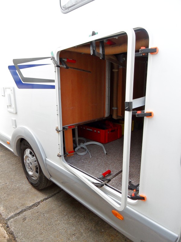 wo bleibt dein Sachsengemüt ? Ich wollte eigentlich nicht antworten, da deine Frage so ähnlich ist wie, was kostet ein Wohnmobil ............... Aus deinen Profil hätte man ersehen können in was für ein Fahrzeug was wo eingebaut werden soll. Da nichts ausgefüllt ist ?????????? Vielleicht wird das ja mal endlich Pflicht, ansonsten keine Postings. Nun zu deiner Frage. Bei meinen Eura Terrestra A 690 HB war links nur eine kleine Klappe verbaut. Beim verstauen der Fahrräder mußte ich immer von rechts durchkriechen. Das nervte enorm daher der Entschluß links eine nachzurüsten. Angebot vom Händler ca. 1200 Euro. War mir zu teuer. Daher original Rahmen besorgt, Türfüllung von Ormocar bestellt, Dichtmasse dazu und selbst eingebaut. Zeitaufwand ca. 10 Stunden. Kosten keine 250 Euro. Ich hoffe das mit den Fotos klappt. ![]() Ich wußte das mit den Fotos klappt nicht.