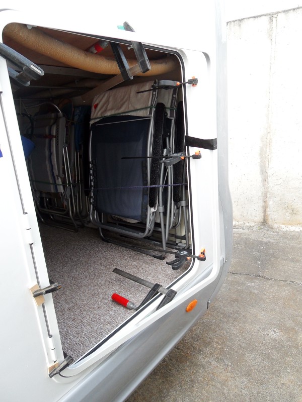 Der Dealer hätte es für 500 Euronen gelöst. Mittlerweile hab ich mich dran gewöhnt, es inspiriert mich nich noch fetter zu werden und ich hab eine Kältebrücke weniger im Mobil. Einzig die Zurrgurte für den Roller müssen immer vorbereitet sein. Übungssache...