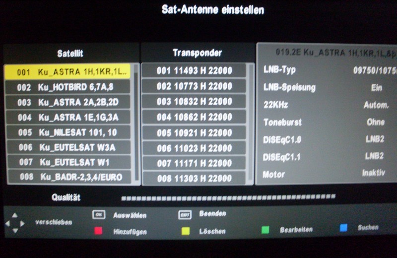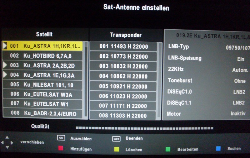 SAT-Antennen Einstellung, dort markiert ihr mit der OK-Taste