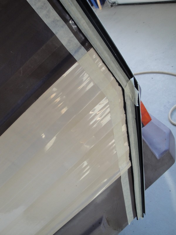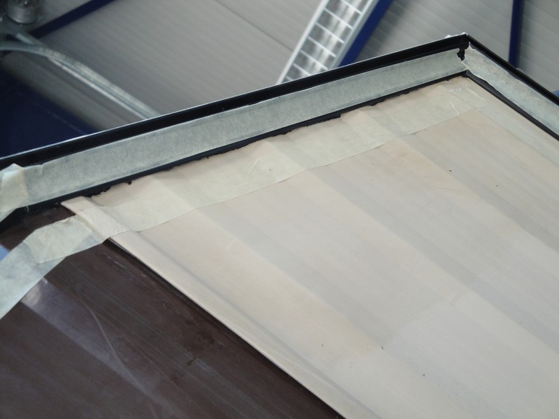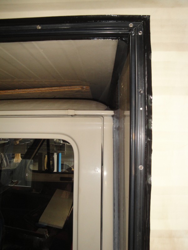 morgen will ich das alkovenfenster einsetzen, den womotürrahmen mit sika zusätzlich behandeln, kleber besorgen und die linke wand mit teppich verkleiden, die dachluke mit sikafuge fertigstellen, reifen montieren, den einstiegstritt montieren. und dann kommt noch sehr viel kleinkram zum machen. hier der womotürrahmen. man sieht schön, wie das gute dekalin rausquillt. morgen werden die schrauben richtig angezogen, die überstände vom dekalin abgetupft und mit sika versiegelt.