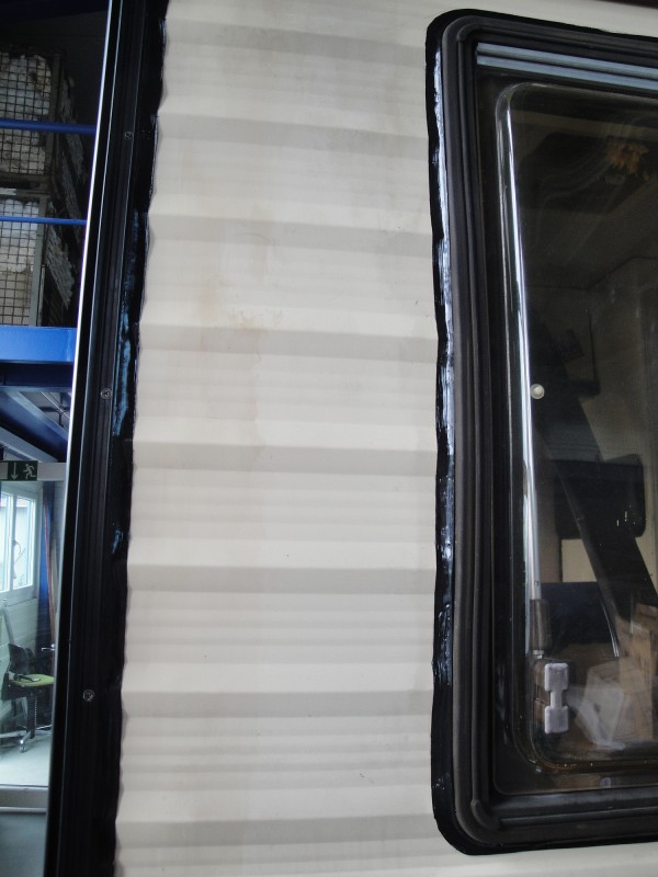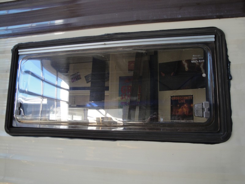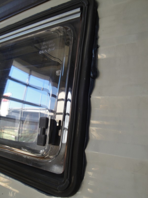 die 3 seitlichen fenster und die klappe der gasflasche habe ich heute auch wieder eingesetzt. da am womo profilblech verbaut ist, habe ich pro fenster fast eine kartusche dekalin verbraten. aber egal, hauptsache dicht.