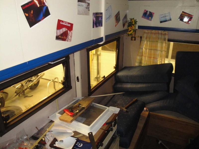 und ihr sollt auch ruhig mal sehen, wie es in der transe zur zeit aussieht. meine marion war heute übrigens in der werkstatt, weil ich nicht pünktlich zum essen erschienen bin. sie hat den zustand vom innenraum eher gelassen hingenommen, was mich gewundert hat. ich dachte, sie trifft eher der schlag. :D