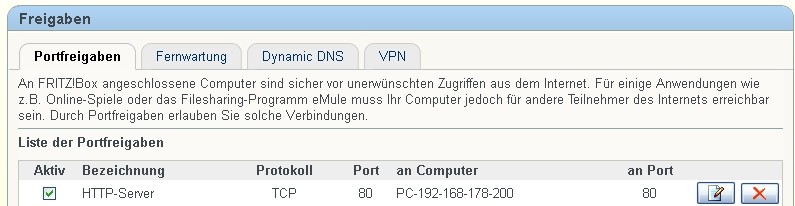 Hierzu müssen aber wieder in der Fritz.Box unter Internet-Freigaben-
