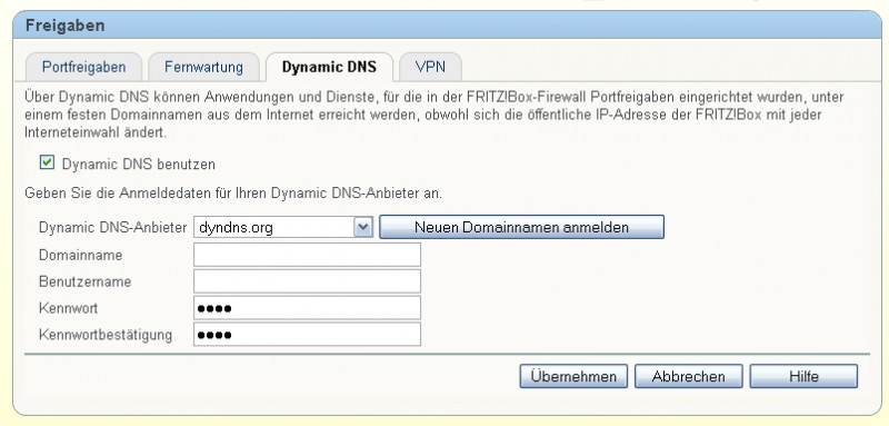 habe auch eine 7170. Dort mußt Du Eingaben machen. Domainname (z.B. hennes.dyndns.org) und Benutzernahme (z.B. hennes) mußt Du auch eintragen! Wollte meine Daten hier nur nicht zeigen. Deshalb hab ich es frei gelassen.