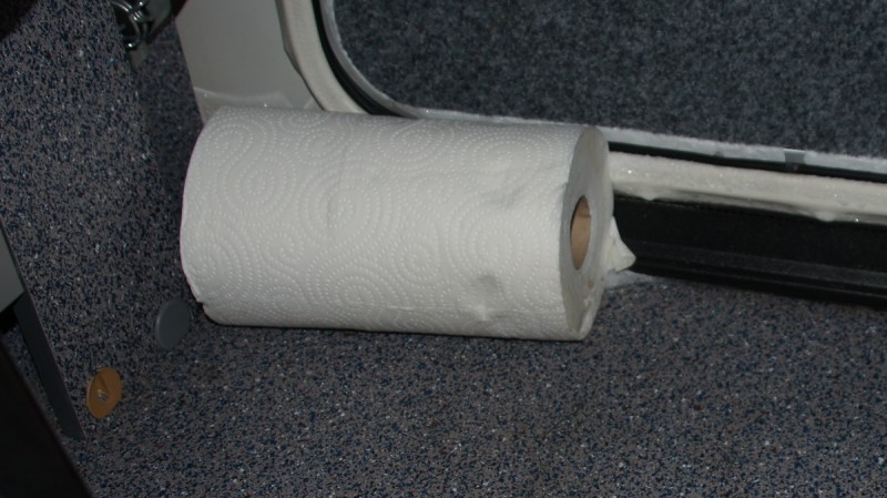 am Ringanker festgefrorene Rolle Haushaltspapier