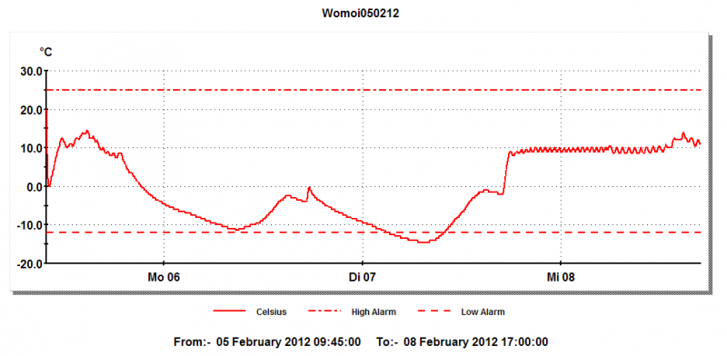 Ich habe seit dem 05. 02 die Temperaturen im Aufbau und am Armaturenbrett aufgezeichnet. Konstant wird es erst seitdem der Brumm klein ist.