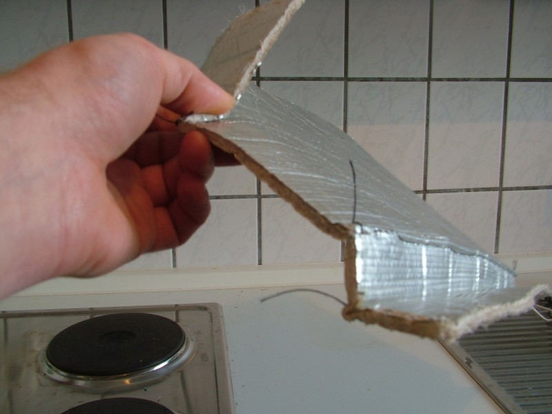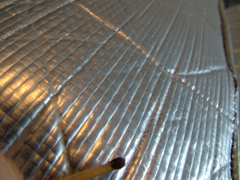Durch einen glücklichen Zufall bin ich zu einer grösseren Menge Spezialplane aus BW-Bestand gekommen. Diese ist in Sandwichbauweise aufgebaut, innen 4mm PU-Schaum und aussen beidseitig silberfarbenes Kunsstoffgewebe. Das Material ist sehr leicht und eigensteif, ähnlich wie Pappe. Das Zeug rief geradezu nach eine kreativen Verwendung; warum nicht z.b. ein Igluzelt daraus bauen ... oder ähnlicher Unsinn :roll: