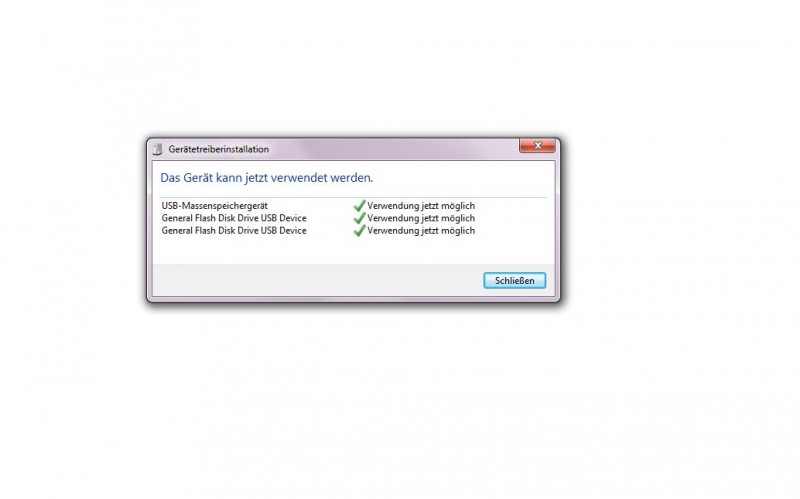 Danke Werner für den Hinweis mit dem Kabel. Es lag tatsächlich am USB-Kabel! Jetzt hat es mein Gerät erkannt und zeigt ihn mir als Massenspeicher an. Beim mitgelieferten Kabel zeigte er ein Programm an aber meldete, dass die Treiber nicht gefunden wurden. Beim anderen Kabel installierte er die Treiber und meldete, dass die Geräte verwendet werden können! @franz_99 Auch wenn Du mir nach wie vor weiß machen willst, dass keine Gerätetreiber installiert werden, habe ich Dir mal einen Screenshot mitgeschickt! Hier ist eindeutig zu sehen, dass nach dem Anschluss Gerätetreiber installiert werden. Diese Installation war mit dem defekten Kabel fehlgeschlagen!