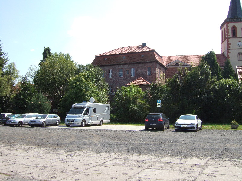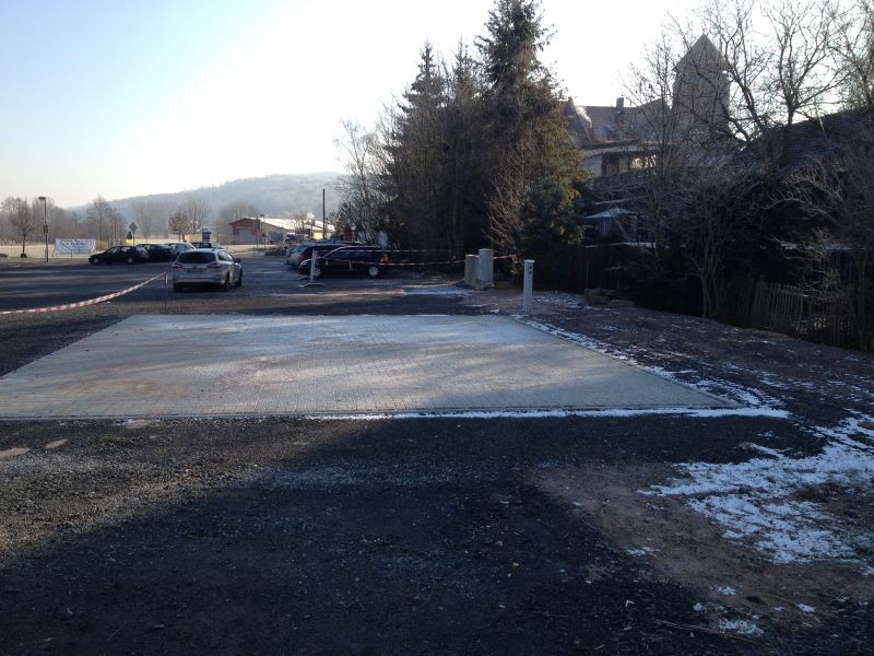 Es läuft direkt die Bundestraße daran vorbei. Direkt daneben ist das "Vachwerk". Dort sind öfters mal Veranstaltungen bzw. Disco. Für einen Stadtbesuch aber in Ordnung. Die V&E ist etwas unglücklich installiert, da sie an die Ecke eines Gebäudes installiert wurde. Zum ablassen von Grauwasser ist ein Schlauch ratsam oder eben über die TOI-Kasette. Stromsäulen vorhanden. Der Platz ist für 2 Wohnmobile gepflastert worden, es können aber auch mehr dort stehen, da es eine geschotterte Parkplatzfläche ist. Hier noch ein Bild nach der Fertigstellung. ![]() |