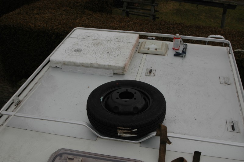 wenn mich meine Augen nicht täuschen, hast Du doch ein zwillingsbereiftes WOMO. Da kannst Du doch entweder mit einem platten Reifen bis zur nä. Werkstatt "humpeln" oder eines der Zwillingsräder von hinten nach vorne montieren und so mit einem Rad auf einer Seite der HA in die nächste Werkstatt "humpeln". Dann brauchst Du die ganze Chose nicht oder und sparst auch noch ca. 35 KG ? :D Zumindest mache ich es so, habe allerdings in über 40 Jahren im Außendienst noch nie ein Reserverad gebraucht, aber immer eines dabei gehabt :D Im WOMO nicht mehr. Erledigt, seit heute Morgen liegt das Ersatzrad auf dem Dach, besser auf zwei Aluprofilen, die für 10mm Abstand zum Dach sorgen. Vorn stößt das Rad an die Dachreling, die in diesem Punkt im Dach ruht und hinten habe ich zwei Aluprofile (L-60x100x80) ans Dach geklebt. Daran wird das Rad mit einem Gurt verzurrt.