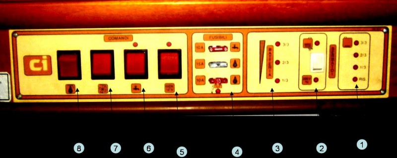 2) Unten: leuchtet, wenn 220V anliegt. Kontrolle, wenn du Landstrom ziehst, ob auch wirklich Saft da ist oder wenn man für Strom bezahlt, dann siehst du daran z.B., dass Geld alle ist. Oder wenn irgendein netter Nachbar mit einem tollen Gerät die Sicherungen des ganzen Weges rausgehauen hat.