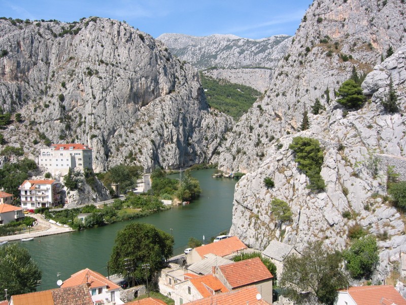 Blick von der Burg herunter auf die Cetina-Mündung: