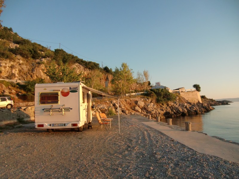 Hier schon mal eine Adresse in der Nähe von Senj. Autocamp Raca ,53280 Sveti Juraj Tel. +385.53.883.209 Angenehmer kleiner Platz mit angeschlossener Tauchschule,geleitet von einem Deutschen.Gutes Restaurant oberhalb des Campingplatzes,ca.300 m. Ansonsten mit dem Fahrad in das nächste Dorf ,der Pklatz ist ca. 2 km ausserhalb von Sveti Juraj ,ist aber recht anstrengend,dafür aber sehr schöner kleiner Hafen mit ein paar Restaurants. Das könnte die erste oder zweite Station in Richtung Dubrovnik sein. Ich versuche mal Bilder vom Platz zu finden. Im übrigen ,die Tour entlang der Küstenstraße ist traumhaft.Kleine Campingplätze findet man eigentlich überall entlang der Küste ,auch in der Hauptsaison. Also ich bleibe dran und versuche mal meine Reiseroute nachzuempfinden. Frank :) 8) :wink: Super! Wie sieht es eigentlich mit den Preisen auf den Minicamps aus? Gehe ich da richtig in der Annahme das in der Hauptsaison so ein Platz zwischen 35 und 40 Euro liegt ?