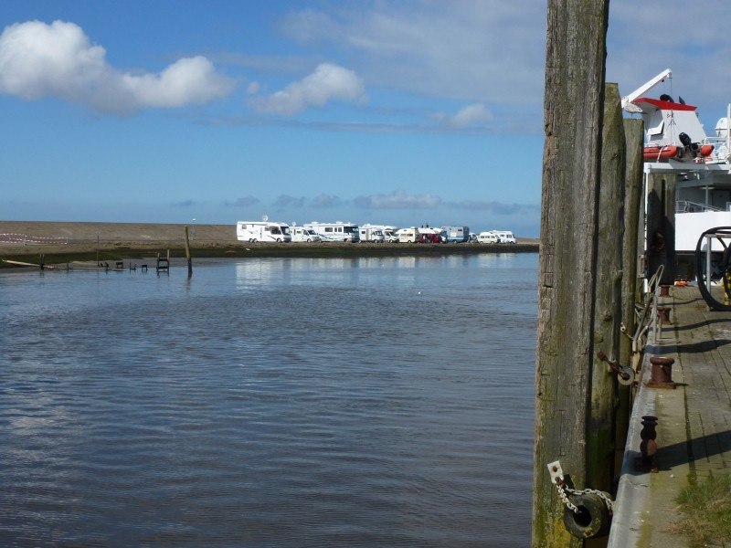 Von Bremerhaven nach Cuxhaven ist es nicht weit – wie gesagt, die Tagesetappen sind hier oben recht kurz. Da wir frühzeitig angekommen sind haben wir uns einen guten Platz mit bester Aussicht auf die Schifffahrtsrinne der Elbe sichern können. Hier fahren ganz knapp am Ufer alle Schiffe vorbei, die vom Hamburger Hafen oder vom Nord-Ostseekanal kommen bzw. dort hin wollen. Große Pötte und kleine Kutter. Es ist immer was los auf dem Wasser. Für so bayerische Landratten völlig ungewohnt. Am Platz finde ich auch ein freies, schnelles WLAN und kann mir somit den Traffic über den UMTS-Stick sparen.