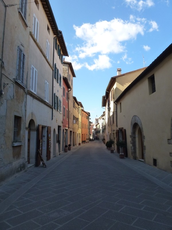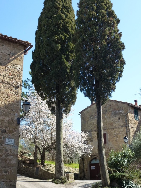 Der Abschied von Pozzarello fiel uns nicht schwer, denn am Vormittag fing es an zu regnen. Der erste Regen seit unserer Abfahrt aus Deutschland. Die Fahrt war nicht weit, so ca. 100km auf kleinen, sehr kurvenreichen Stecken durch die unterschiedlichsten Landschaftstypen. Schon während der Fahrt lies der Regen langsam nach und auch die Sonne kam wieder zum Vorschein. Der Regen ist jetzt für die Toskana sehr wichtig, damit die Flora in den Frühling starten kann. Überall blühen schon die Mandelbäume und die Wiesen werden saftig grün. Auch bei den anderen Bäumen und Sträuchern merkt man, dass es nur noch ganz kurze Zeit braucht, damit auch sie wieder blühen oder Blätter bekommen. Nur die Eichenbäume haben noch die braunen Blätter vom Vorjahr dran. San Quirico d’ Orca hat einen Wohnmobilstellplatz mit Ent- und Versorgung. Da der Parkscheinautomat für den Stellplatz defekt war, kostete die Übernachtung nichts. Nachmittags besuchten wir den Ort, der eigentlich abseits der bekannten Straßen liegt und zu Unrecht wenig besucht wird. Uns hat der kleine Ort recht gut gefallen und wir haben beim Spaziergang im Ort auch regionale Spezialitäten (Pecorino und Buristo) gekauft. Buristo ist so eine Art Blutwurst mit südländischen Kräutern und schmeckt sehr würzig. Nachdem das Wetter sich zwar gebessert hat aber noch nicht so richtig für einen Rollerausflug geeignet ist, fahren wir weiter nach Casciano di Murlo, so ca. 20km südlich von Siena – nicht ohne uns versprochen zu haben, nach Casciano wieder an diesen Ort zurück zu kehren. Denn die Rollerausflüge in dieses typisch toskanische Gegend müssen unbedingt nachgeholt werden.