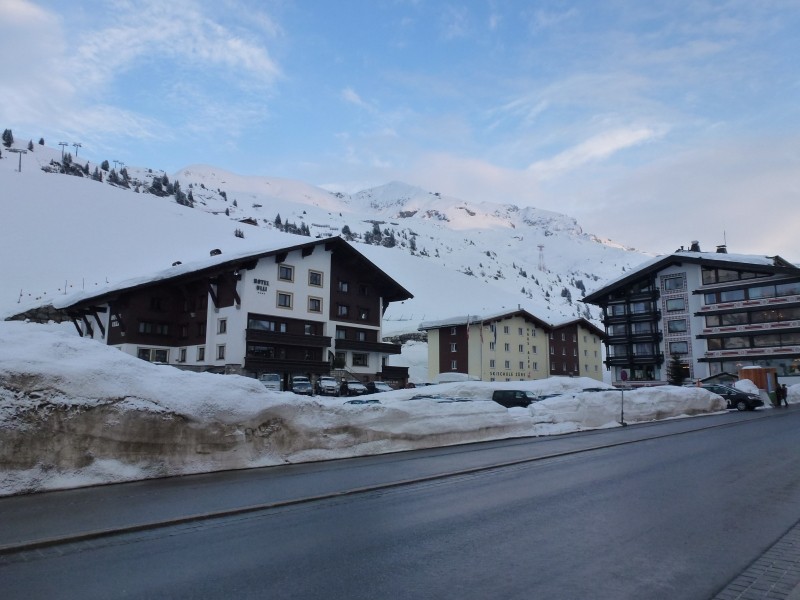Als im Ort immer mehr Touristen ankamen brachen wir auf, um dem Frühling in den Norden zu folgen. Über Bardolino, Bozen, Vintschgau, Reschenpass fuhren wir gemütlich durch blühende Felder nach Österreich um dort in Zürs bei Bekannten auf dem Platz vor ihrer Tankstelle zu übernachten. Für den Weg bis nach Zürs nahmen wir uns zwei Tage Zeit. Oben in Zürs hat es noch sehr viel Schnee und der Skibetrieb ist noch im vollen Gange. Es wurde kalt, der Himmel bedeckte sich und schließlich schneite es in dicken Flocken. Nix mit Frühling hier oben in den Bergen!!! Deshalb gleich am nächsten Tag wieder runter in die Täler und bis zum Bodensee. Dort ist er wieder – unser Frühling! Warm, so wie wir es gewohnt sind und Sonne, damit an der Uferpromenade von Überlingen der Kaffee schmeckt. Zürs im Schnee: