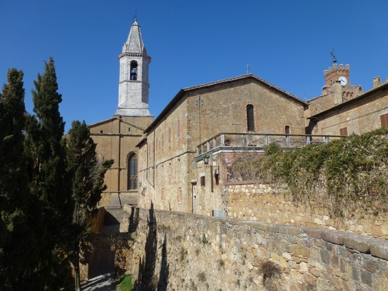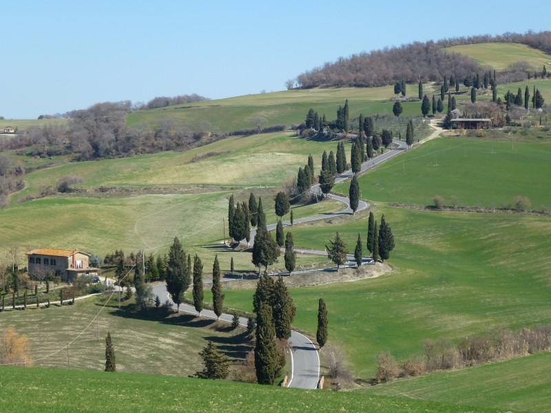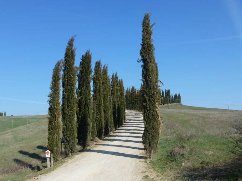 Kreuz und Quer, so habe ich in der Überschrift geschrieben geht es in den Frühling. Deshalb fahren wir auch wieder nach Quirico d’Orcia zurück. Der Stellplatz ist immer noch kostenlos, denn auf dem Parkscheinautomat ist ein Zettel angebracht: „Guasto“ = kaputt. Quirico d’Orcia (ca. 50 km südöstlich von Siena) kann ich nur jedem Toskanareisenden empfehlen, denn der Ort liegt direkt im Zentrum der wunderschönen, typischen Toskanagegend (Crete). Der Gegend, in der die herrlichen Postkartenaufnahmen mit den schönen Zypressen und Pinien gemacht werden. Und besonders schön ist es, von diesem Ort aus Ausflüge nach Pienza, Monticchiello, Montepulciano und Bagno Vignoni zu machen. Wir fuhren an wunderschönen Zypressengruppen vorbei, durch Zypressen gesäumte kurvenreiche Sträßchen und konnten die genannten Orte besichtigen. Wobei Montepulciano uns am wenigsten gefiel. Überall ist schon der Frühling voll zu sehen: die Bäume erhalten ihr erstes Grün, die Wiesen sind saftig (wobei es hier durchaus mal regnen dürfte um der Natur zu helfen), Mandelbäume blühen rosa und auch die Magnolien blühen schon. Es blüht und grünt und es ist wunderschön – und das allerschönste: wir brauchen nicht mehr arbeiten, wir sind „Privatiers“. Pienza: