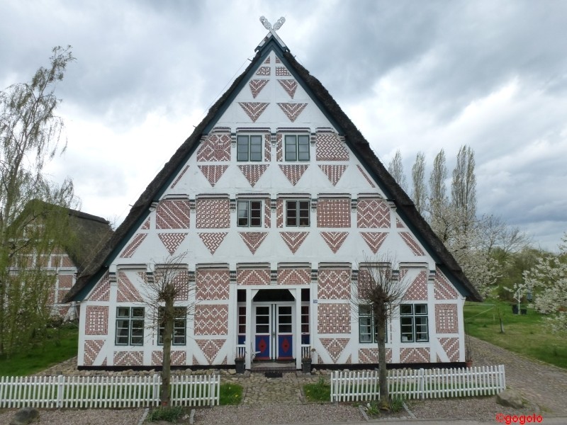 Aber jetzt haben wir den Frühling wieder, schließlich fahren wir ja Kreuz und Quer in den Frühling!Zuerst blüht in prächtigen weißen Farben die Kirschbäume, dann folgt mit einer Woche Abstand die rosarote Blüte der Apfelbäume. Zwischen bzw. bei den Obstplantage stehen herrschaftliche reetgedeckte Fachwerkhäuser – alles wunderschön anzusehen. Wenn ein Windstoß kommt, dann wirbelt es die Blütenblätter von den Kirschbäumen dass man meint, es schneit.