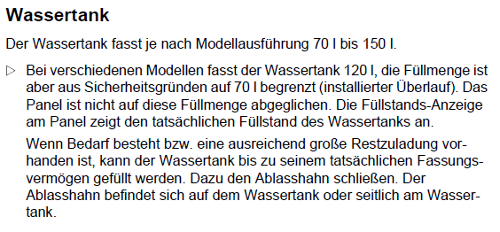Hallo Jörg. Die Hersteller würden diese nicht unerhebliche Mehrausgaben für das Ventil gerne sparen. Im Gegenzug müssten die Wohmobesitzer darauf verzichten zum Beispiel ihre Getränke von zu Hause durch die halbe Welt zu karren. Oder Jahr ein, Jahr aus, ob Urlaub in den Bergen oder am Meer alles immer mitzunehmen usw. Unterm Strich geht es um nichts anderes als Gewicht einzusparen. MfG Wolfgang Diese Angabe 70/120 steht wie schon erwähnt für die Füllstände. Fahrbereiter Zustand 70L und max. Füllstand 120L. Also im fahrbereiten Zustand 50kg eingespart = mehr Zuladung. In unseren Unterlagen steht 50/50 und wir dürften eigentlich auch laut Beschreibung nur mit einem Füllstand von 50L fahren.