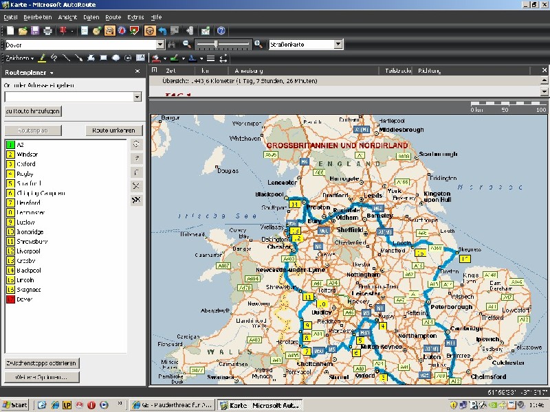 Hallo Ottomar, klarer Fall von zuviel reininterpretiert. 1. Sind es fast 4 Wochen. 2. Sind es nur 2 Reiseführer. 3. Die Tatsache, dass diese auf meinem Nachttisch liegen, bedeutet nicht zwangsläufig, dass wir nach Großbritannien fahren. Im Zusammenhang ist Deine Vermutung aber naheliegend. 4. Wir haben noch eine Rechnung mit den Bergen in Wales offen (siehe Wales-Thread). Gerne würden wir auch nochmal bei Stu in Pembrokeshire vorbeischauen.Was wir aber überlegen ist, ob wir nicht zur Abwechslung an der Ostküste hochfahren(vielleicht bis York) und dann sozusagen von oben in Wales eindringen. 5. Deine Route (wie Deedee sie berechnet hat) könnten wir dann ja an den ersten 2 Tagen zur Gewöhnung an den Linksverkehr abfahren. @deedee Spuckt Dein Microsoft Routenplaner auch aus, was uns das bei den aktuellen Dieselpreisen kosten würde?