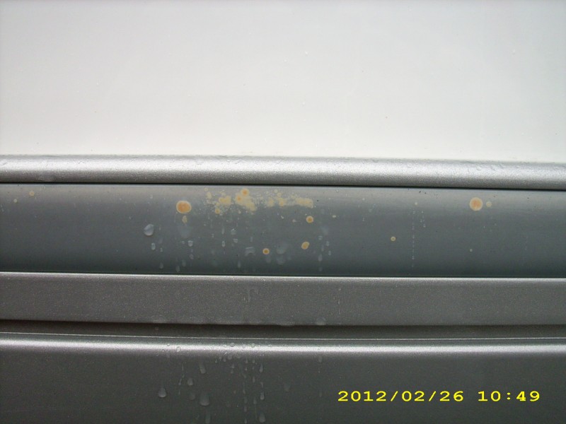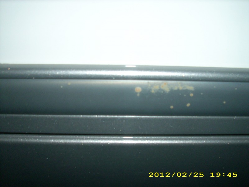 Bei unserem Adria A670 SL (2010) bilden sich auf der Zierleiste immer mehr seltsamer Flecken (kein Dreck) auf der "Sonnenseite" (Stellplatz am Haus). Auf der anderen Seite sehe ich diese Flecken nicht.