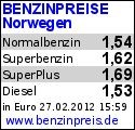 Hallo Werner und alle anderen, Ich will euch ja nicht abschrecken, aber doch mal etwas realistischere zahlen bringen. 24.02.2012 14,2o Nkr/l Dk zum valutakurs vom selben tag von 7.4785 Nkr/€uro ergibt 1.8987 €/l Dk und dieser --> Link entspricht wohl eher der realität :!: :wink: und ganz aktuell heute Statoil Selbu 7.00 uhr 13,44 Nkr/l Dk beim akt. kurs von 7,4975 = 1,79 €/lDk 18.00 uhr 14,21 Nkr/l Dk = 1,89 €/lDk Oh, direkt aus 1. Hand.