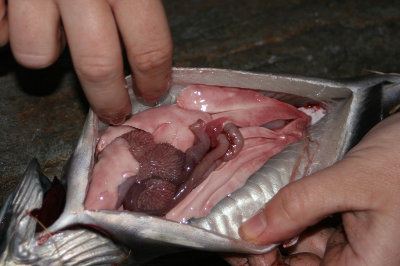 Viele Angler standen am Rand und zogen einen Fisch nach dem nächsten heraus. Wir wurden gefragt, ob wir auch welche haben wollten. Fisch ist immer gut ! Unsere Tochter, Biologiestudentin in Bonn, begnügte sich nicht mit profanem Ausnehmen, sie studierte die innere Anatomie der Tierchen genau.