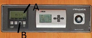 so sieht mein Kontrollplannel aus, wenn ich auf den Knopf B drücke werden die Voltzahl der Starterbatterie und der Aufbaubatterie(n) angezeigt. Nebendran steht die % Zahl. In der Anzeige A steht wieviel Ah ich entnehme (seit 10:30 -10Ah) je mehr Watt ich verbrauche umso höher steigt die Zahl......