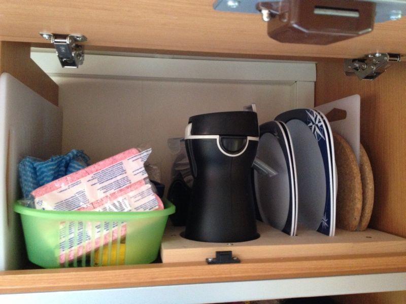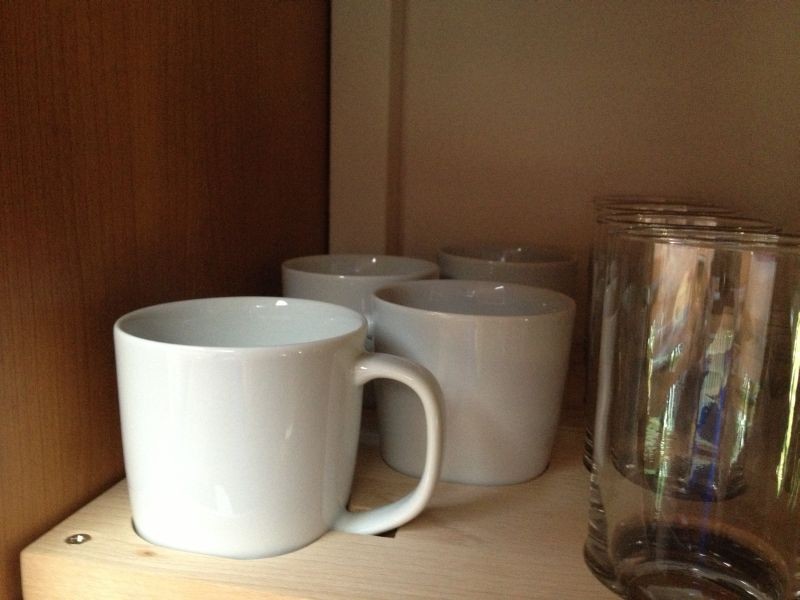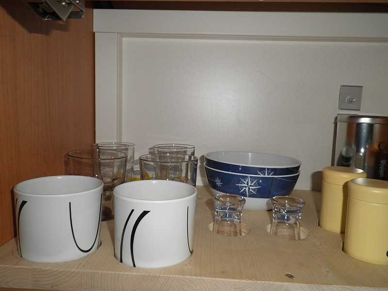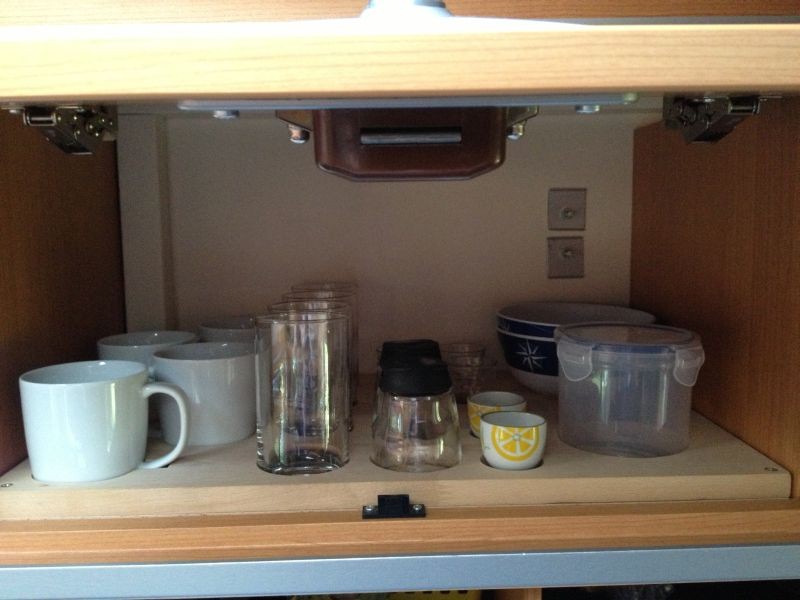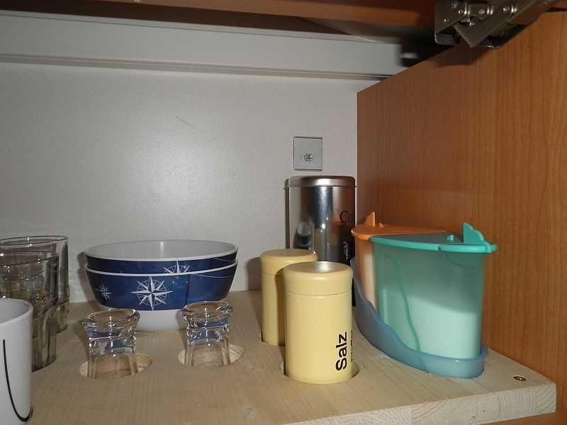 Da ich mit der bisherigen Lösung nicht so glücklich war, hat mich nochmals der Eifer angetrieben. Die alte Platte war aus Fichte & brach mit der Zeit immer wieder aus. Auch mit den Melamin-Kaffeetassen sind wir nicht zufrieden gewesen, da die sich immer mehr einfärbten. Nach einem kleinen Einkaufsbummel bei Ikea & Drogerie Müller gings ran an die Arbeit.