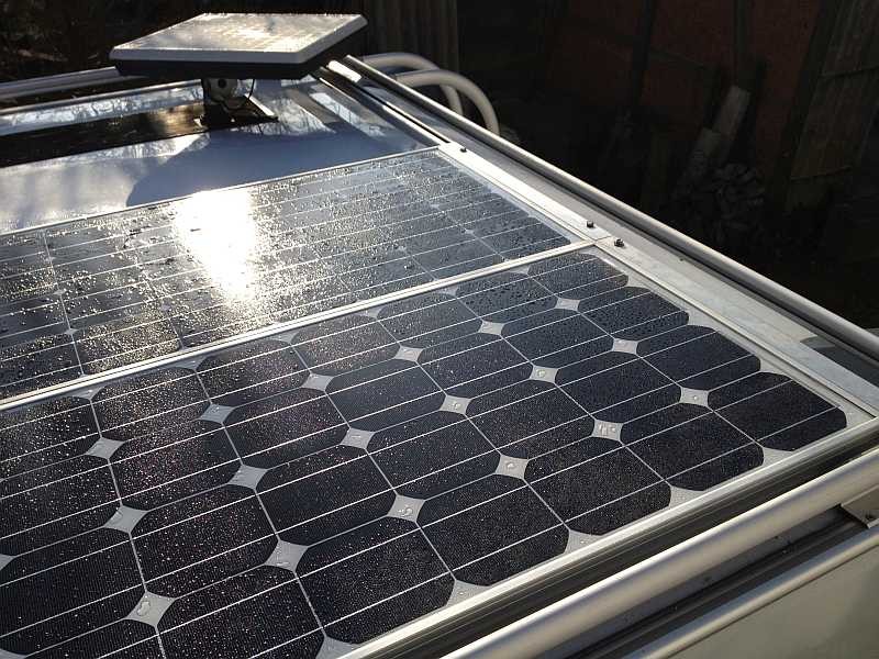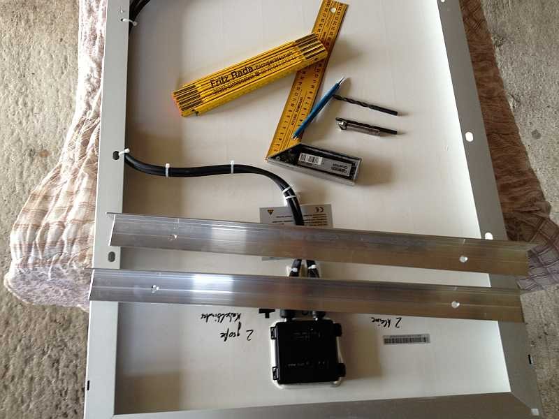 Da wir eine Dachreeling am Womo haben, bietet sich diese an um die Module aufzunehmen. Hier werden sie auch schön unterlüftet. Um mal bei einer Reinigung die Module leicht abzunehmen lege ich alles steckbar aus.