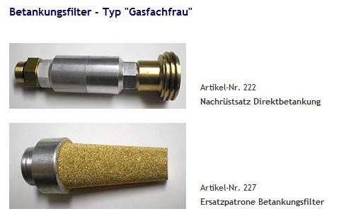 ein Betankungsfilter, der beim Füllen zwischen Flasche & Tankstellenpistole geschraubt wird. Im Inneren ist ein Sintermetalleinsatz, der eher grobe Verschmutzungen filtert.