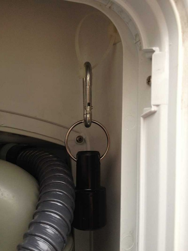 habe den Blindstopfen mit einer Schnur an den hinteren Griff der Kassette angebunden. Bei nichtgebrauch liegt er in der Mulde zwischen Ausgussrohr und Griff. Geht nicht verloren, immer da wo gebraucht.