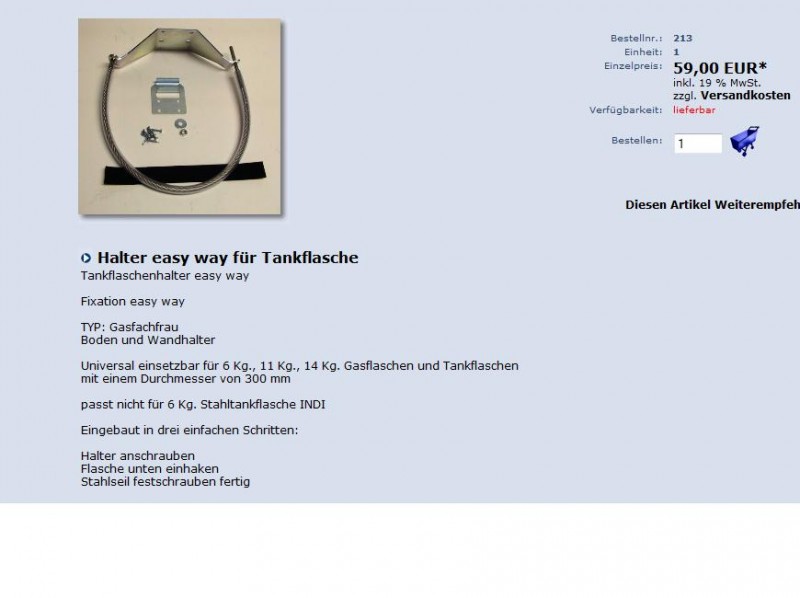 im Frühjahr 2011 haben wir uns entschlossen auf eine Gastankflasche umzusteigen.