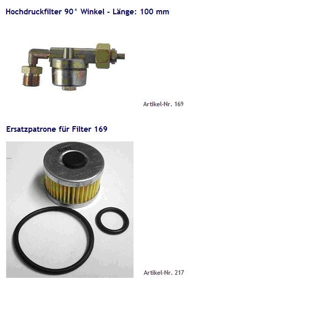 und ein Hochdruckfilter. Dieser beinhaltet einen Papierfiltereinsatz, der feinere Verunreinigungen filtert.