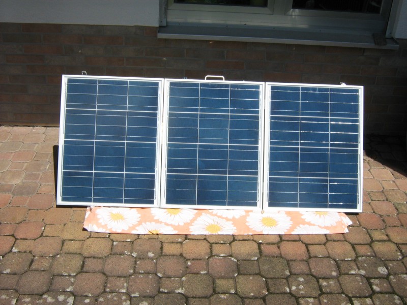 ja, genau den gleichen habe ich auch. Habe jetzt eine feste und abgesicherte Bordsteckdose an der Aufbaubatterie installiert, an die ich mit dem Koffer drangehe. Einen Wechselrichter schließe ich indirekt ebenfalls an die Bordbatterie an und kann so 230-Volt-Geräte bis etwa 100/120 Watt nutzen, ohne die Batterieleistung nachhaltig anzuzapfen. Der eingebaute "Billo"-Laderegler dürfte für diesen Zweck genügen. Das Teil ist im übrigen trotz drei Zellen recht sperrig, es ist zusammengeklappt etwa so groß wie ein Campingstuhl. Wenn es aus zwei Zellen konstruiert wäre bekäme man es kaum noch im Wohnmobil unter... Bezahlt habe ich für das Teil nicht ganz 120 Euro inklusive Versand. Sofortkauf ist irgendwo um 300 Euro. Macht auf mich einen recht guten Eindruck. Viele Hi,
